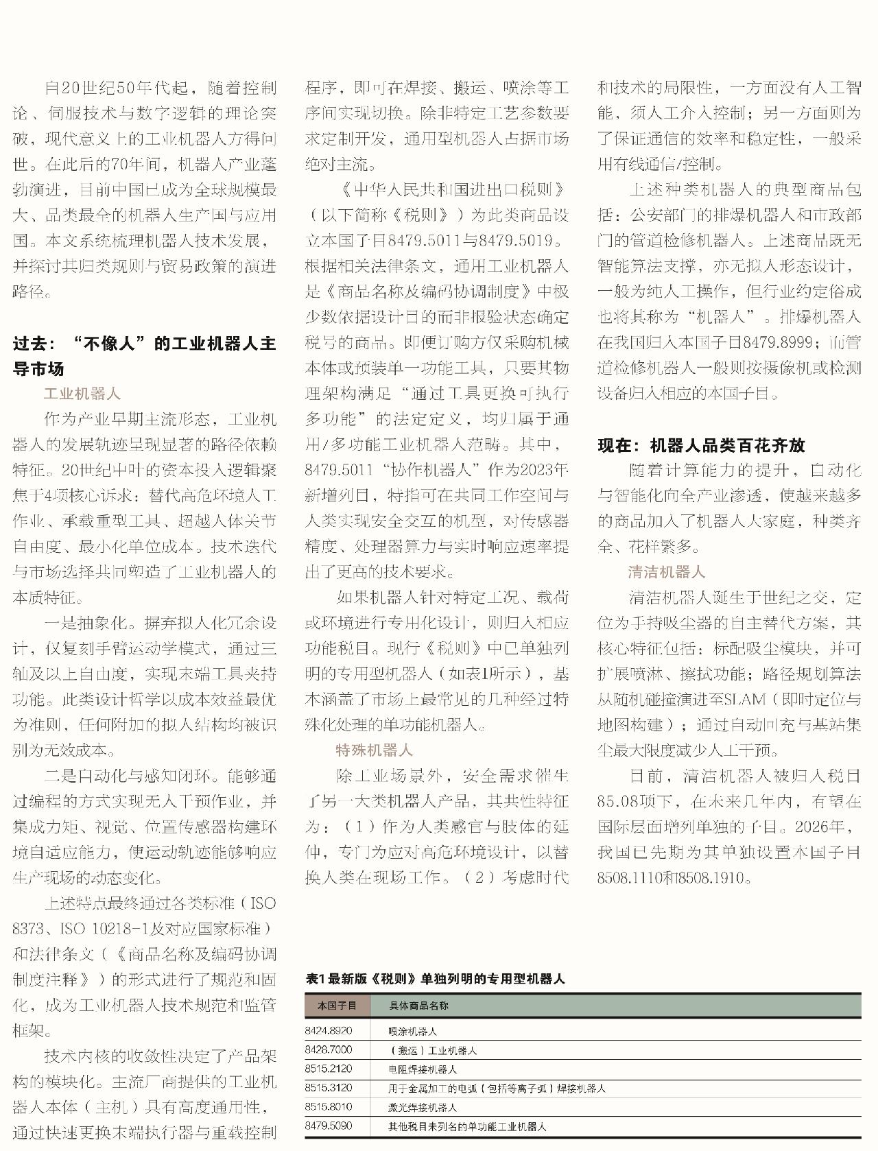 在国际贸易领域,作为科技发展的重要赛道,智能仿生机器人不仅值得在《税则》中单独列目,更应利用国际平台在各国(地区)法律中统一设置归类编码。通过产业、政府、学界的协同推进,我国已在2026年版《税则》中为其单独列目8479.8970,此举不仅为本国产业的发展和“出海”提供了制度保障,更为后续在WCO层面提出《商品名称及编码协调制度》修订议题奠定了基础。未来,海关监管部门将协同产业界、学术界,推动构建覆盖全类别机器人的国际统一分类体系,以制度创新迎接智能时代的全面到来。