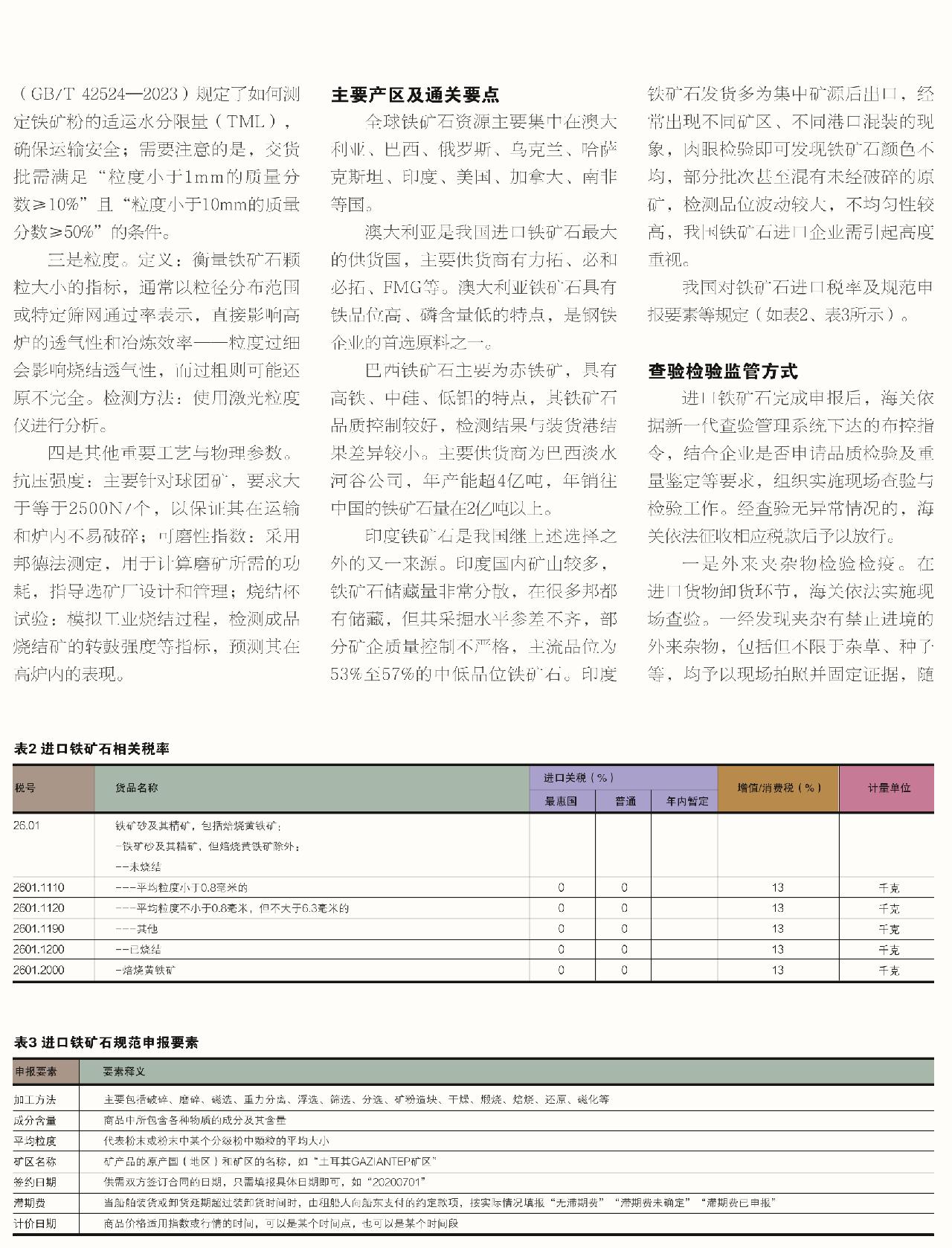 我国对铁矿石进口税率及规范申报要素等规定(如表2、表3所示)。