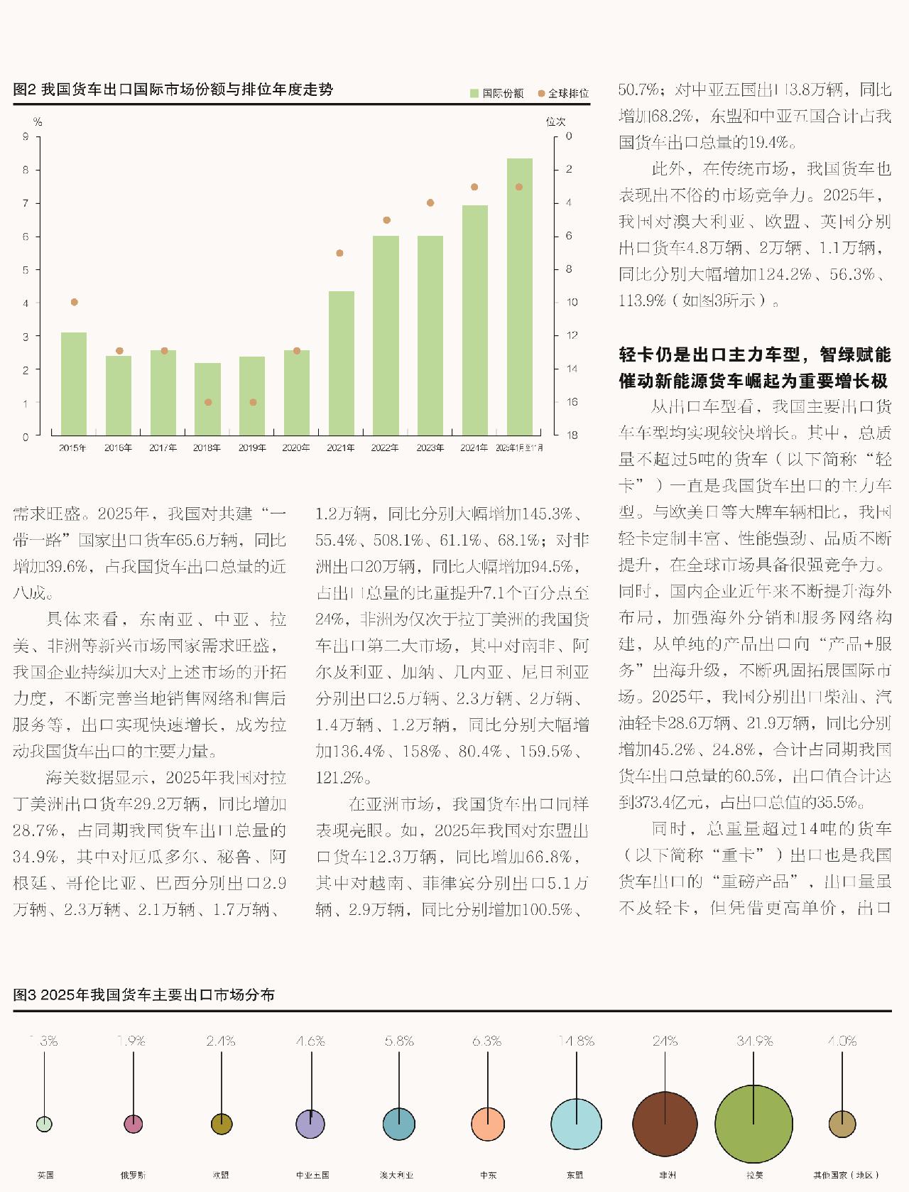 根据中汽协与海关数据综合分析,出口占我国货车总销量比重由2020年的不足5%提升至2025年的超过两成,已成为产业发展的重要引擎(如图1所示)。