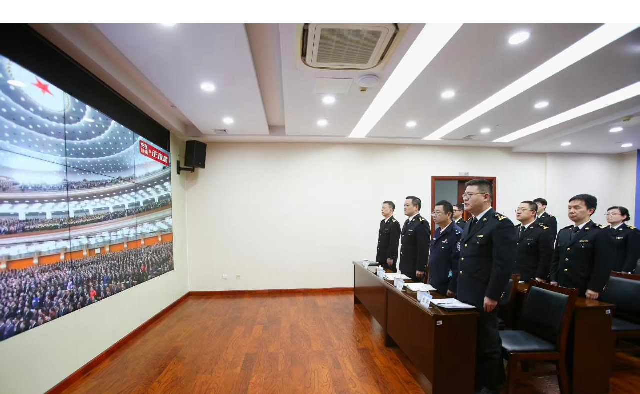 3月5日,十四届全国人大四次会议开幕会在京举行,南宁海关所属凭祥海关组织关员观看开幕会直播。图 / 黄思齐