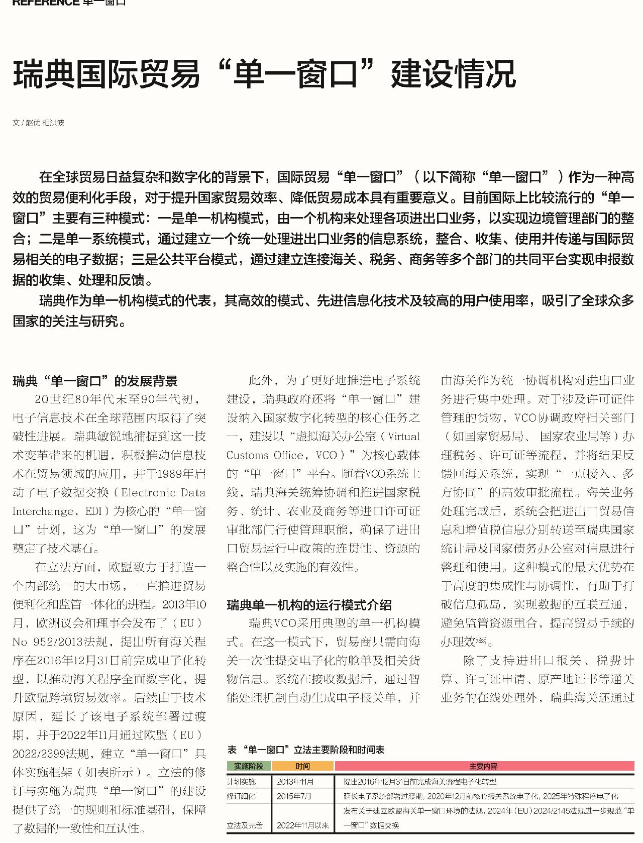瑞典国际贸易“单一窗口”建设情况