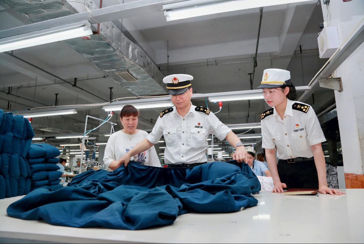 南京海关所属江阴海关关员在纺织出口企业调研RCEP适用情况。