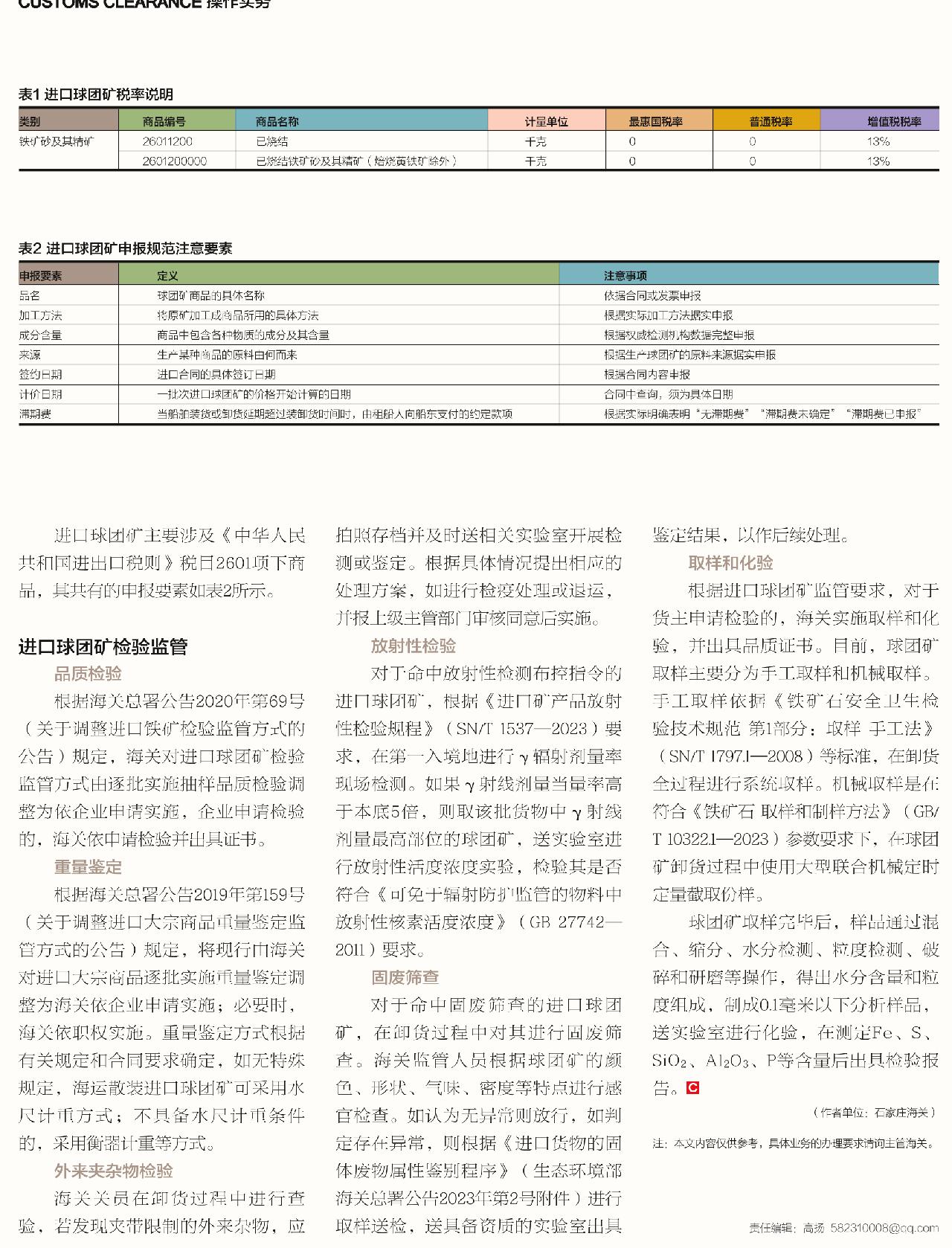 进口球团矿通关指南