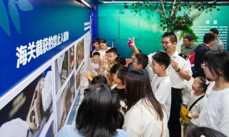 南京海关所属南通海关开展“国门崇法”海关法治研学活动,邀请中小学生聆听“国门崇法科普+法治”讲解,深入了解国门生物安全知识和海关相关法律法规。图/杨阳