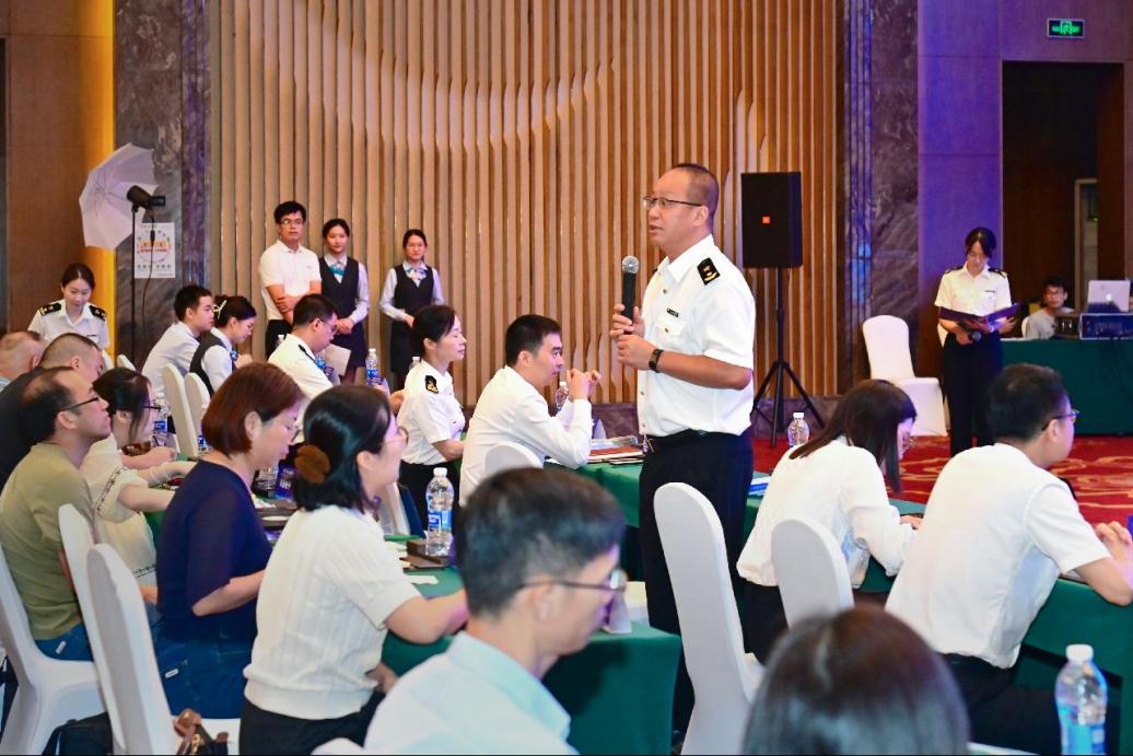 “8·8”海关法治宣传日前夕,江门海关举办以“携手共进,破局前行”为主题的海关高级认证企业(AEO)政策宣贯座谈会,就AEO相关联合激励政策等内容进行解读宣讲。图/黄昭仪