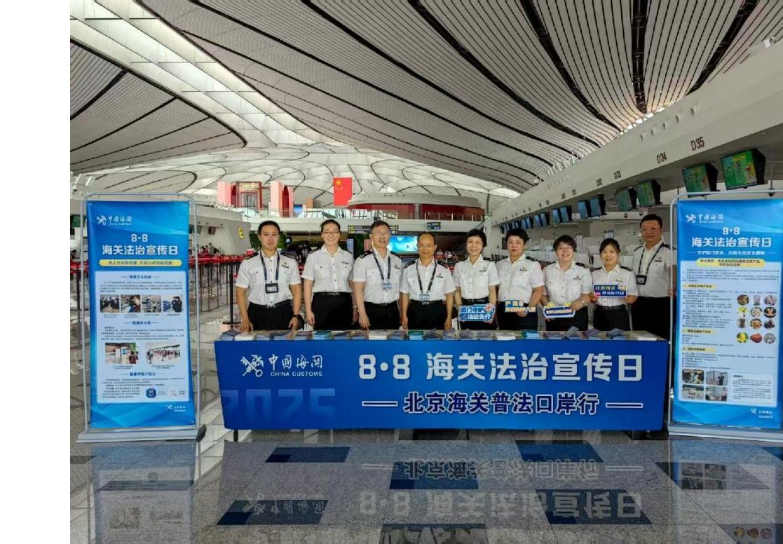 北京海关开展“北京海关普法口岸行”活动,向旅客及机场店面工作人员进行普法宣传。图/刘春晓