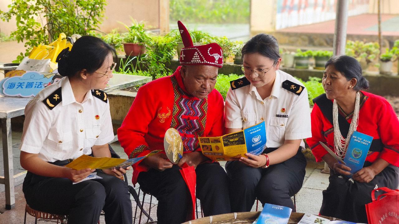 昆明海关所属沧源海关关员到云南沧源永和社区向中缅边境边民宣讲海关法律法规。图/肖红玲