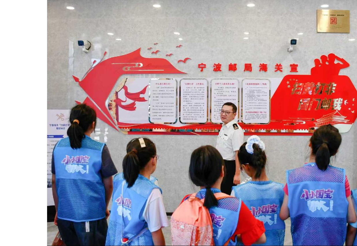 宁波海关联合天一阁博物院开展“扬帆‘河海’回望百年大关”暑期研学活动,青少年们走进宁波海关所属宁波邮局海关业务现场,通过参观基层站点、报关大厅等形式开展“沉浸式”普法教育,体会守护国门安全的重要意义。图/鲍宇丁