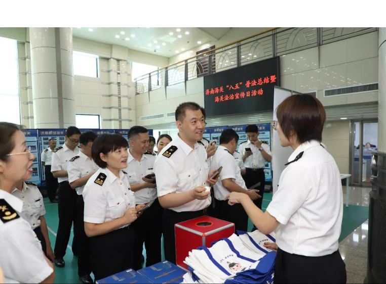 济南海关组织“八五”普法总结暨海关法治宣传日活动,现场开展普法成果展,组织法律知识问答、法治电影观影等活动。图/赵青