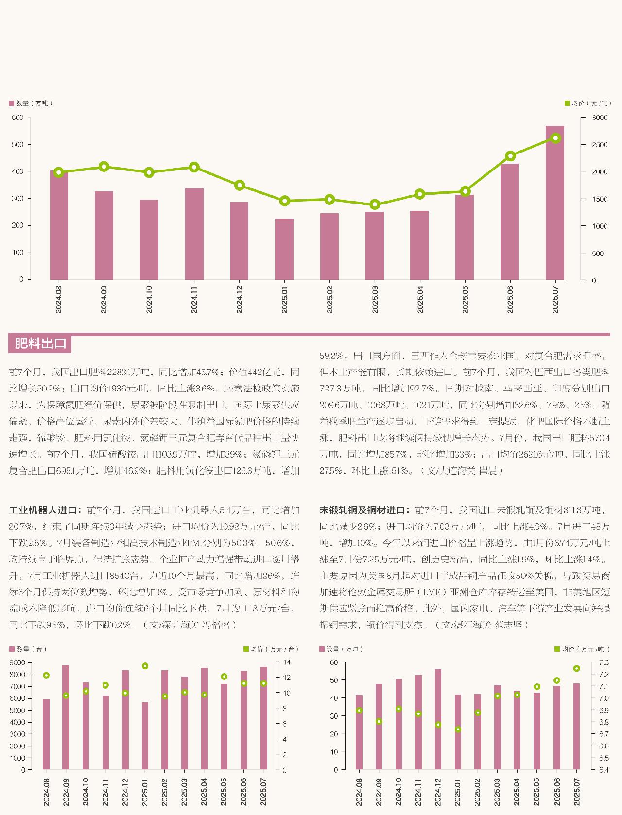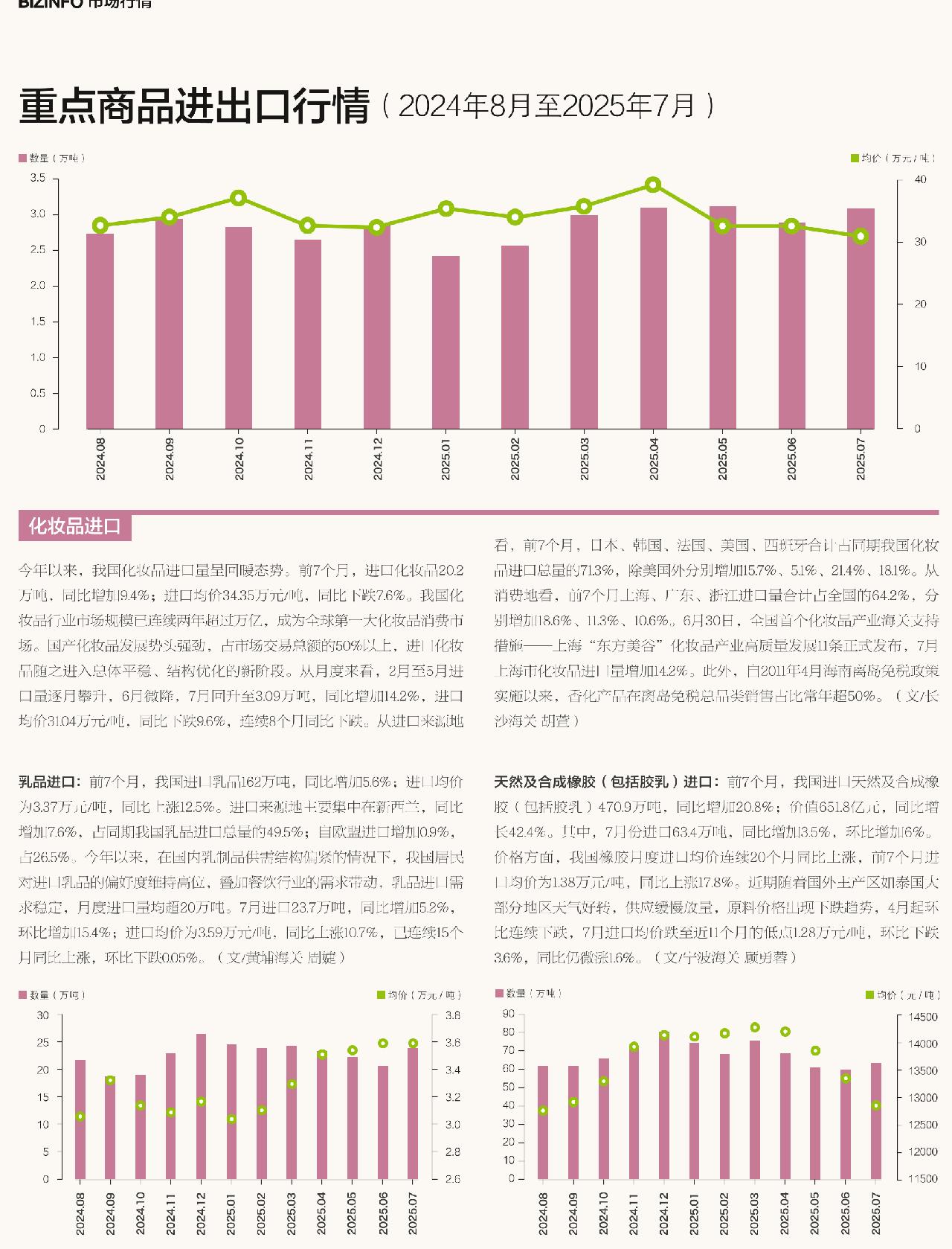 重点商品进出口行情(2024年8月至2025年7月)