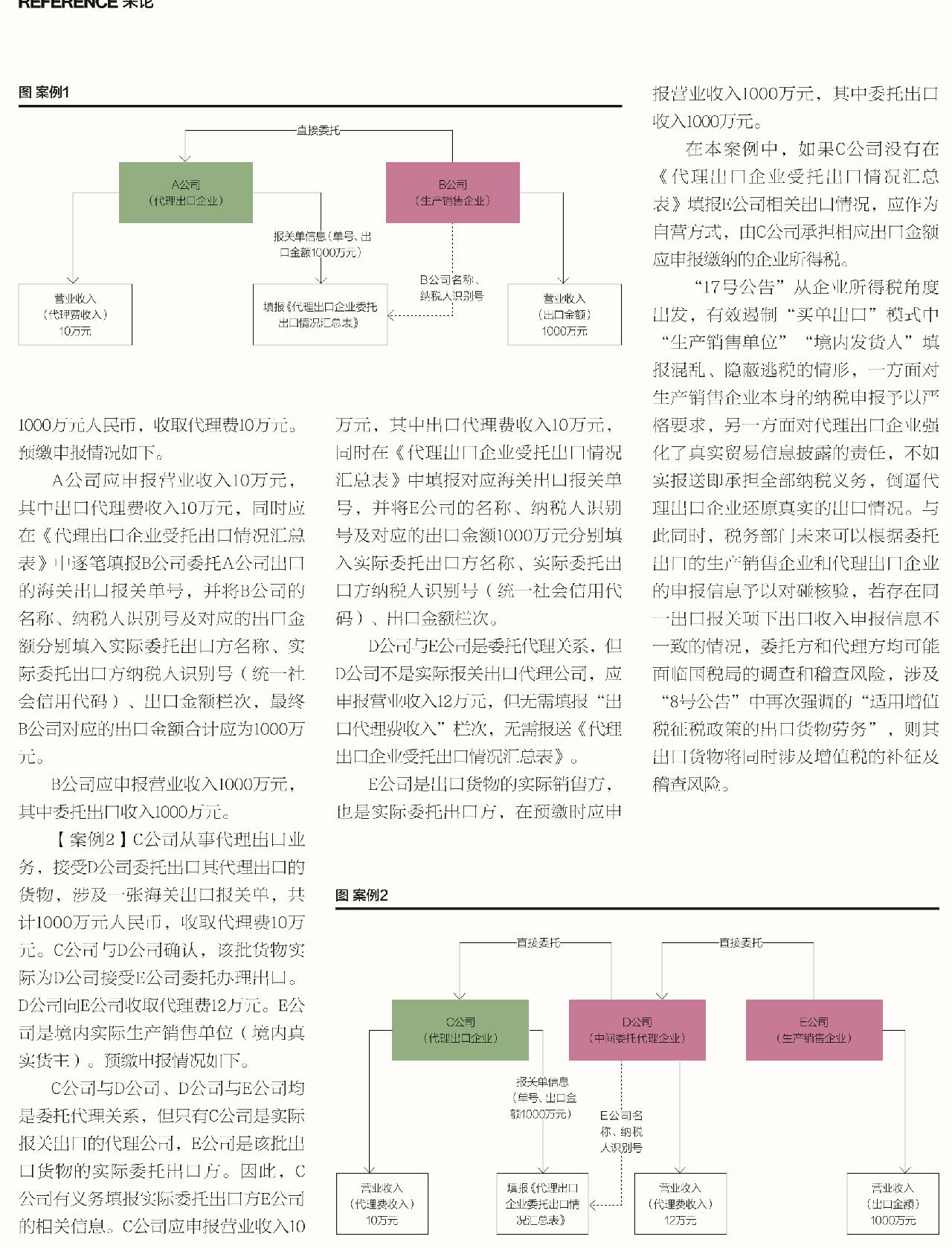 2.内部完善税务申报管理机制,将委托方的出口收入与自身代理费收入所涉及的单证、账簿、凭证等进行区分归档保管,防止出现因内部记账混乱导致应税范围不清晰的问题。
