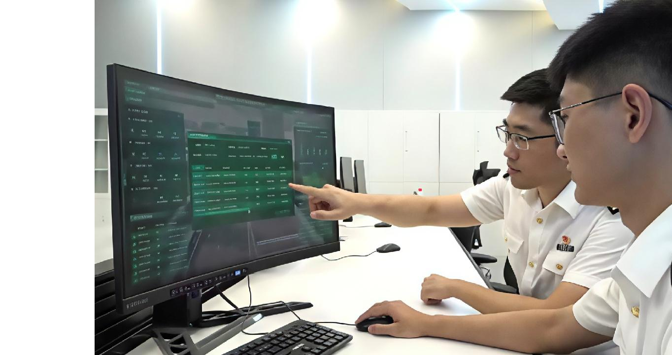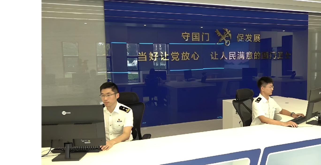 北京海关所属亦庄海关关员在监控指挥中心开展防抛物演练。图/周涧柔