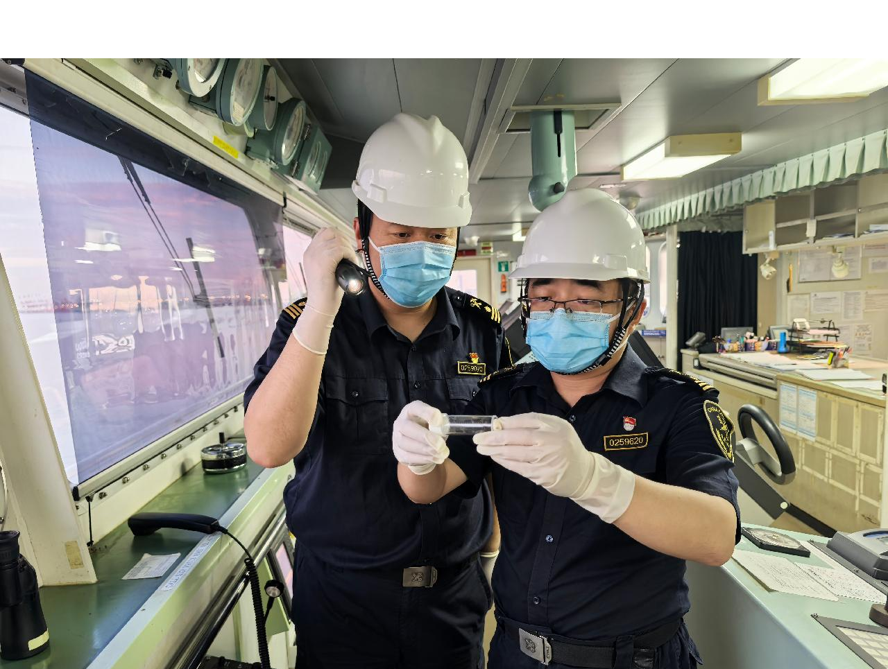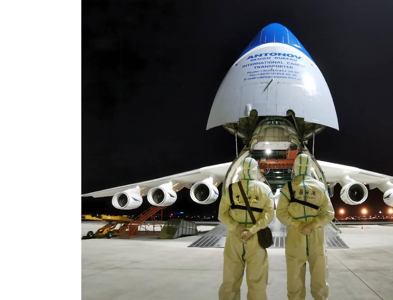 天津海关所属天津滨海机场海关关员在新冠疫情防控期间对货机实施卫生检疫。图 / 赵毅