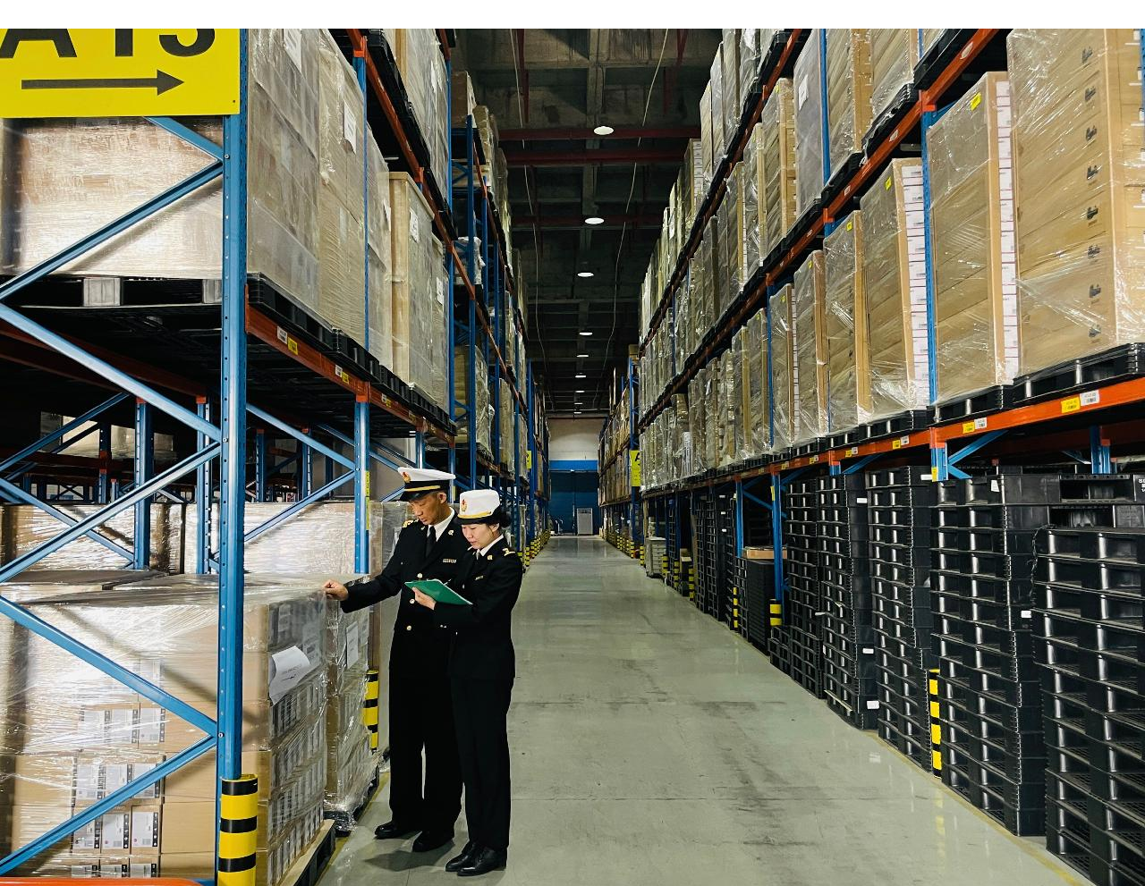 深圳海关所属蛇口海关关员在前海综合保税区跨境电商仓库进行实货核验。图 / 汤政龙