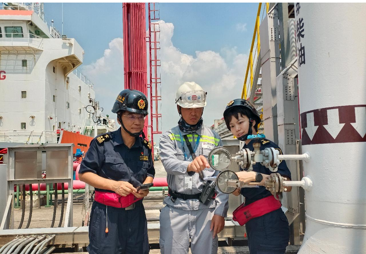 黄埔海关关员对被同时列入危险化学品和危险货物范畴的液化丙烷实施监管。图 / 濮宣