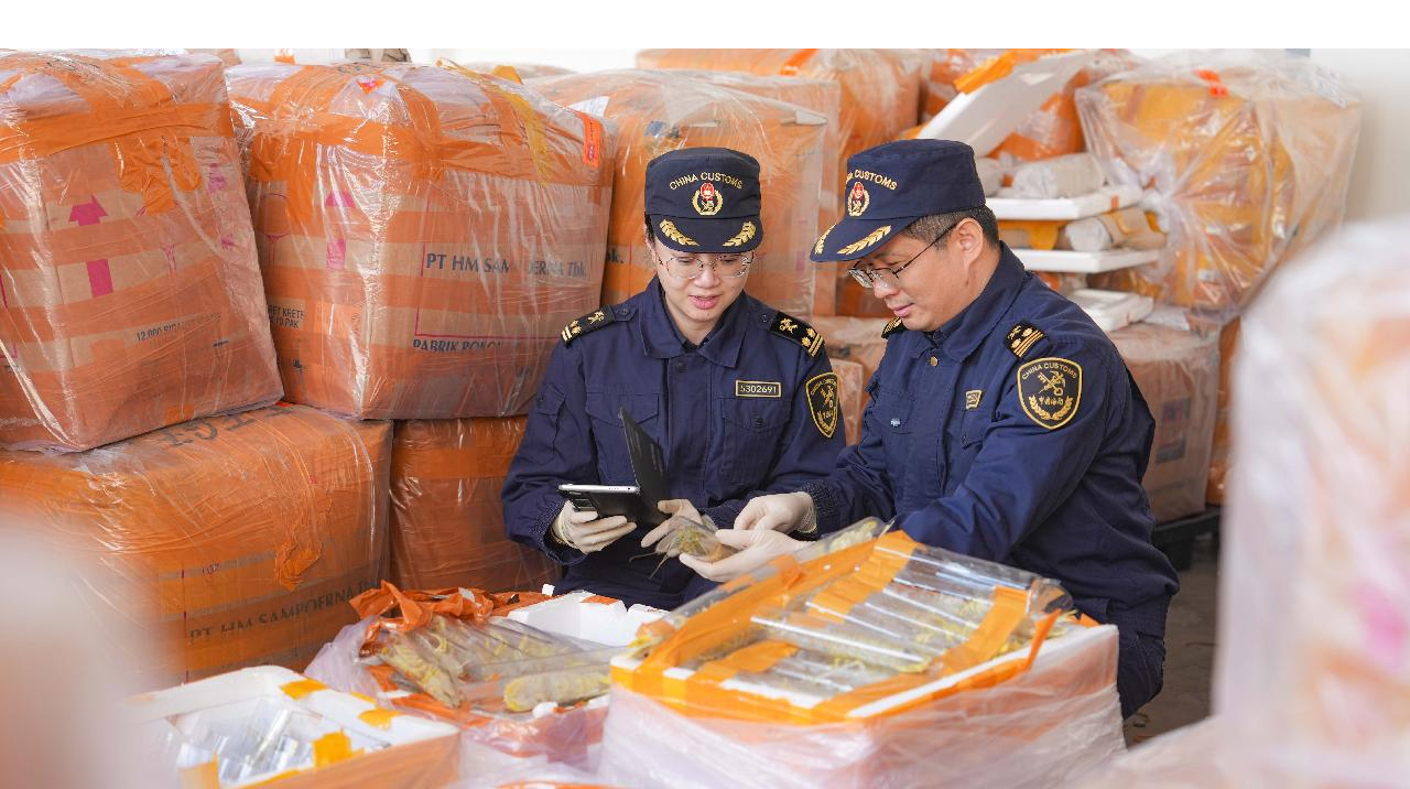 2月5日,深圳海关所属文锦渡海关关员对一批产自东南亚的濑尿虾开展查验。新年伊始,文锦渡海关迎来海鲜进口开门红,1月累计监管各类进口水生动物约720吨,货值约1.2亿元。图 / 吴小翔