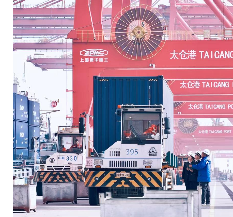 1月15日,南京海关所属太仓海关关员对太仓港“联动接卸”进出口货物开展现场监管。1月太仓口岸以“联动接卸”模式进出口集装箱达3.2万标箱,为企业节约可观物流成本,有效减轻运营负担。图 / 杨泽浩